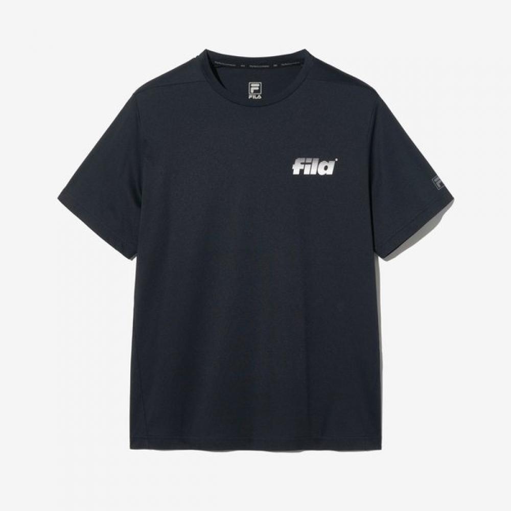 The FILA Aqua X Cooling Short Sleeve T-shirt is a unisex sports T-shirt. This product is made from Aqua X material with contact cooling functions, providing a refreshing sensation when in contact with the skin. It features a round neck design and short sleeves, ensuring comfortable wear even during exercise. The main color is Charcoal.