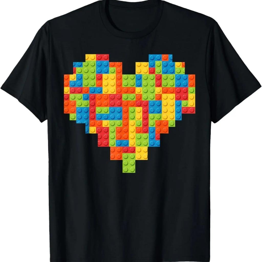 T-shirt Brick Builder Cœur Saint-Valentin Bloc de Construction Maître Bâtisseur