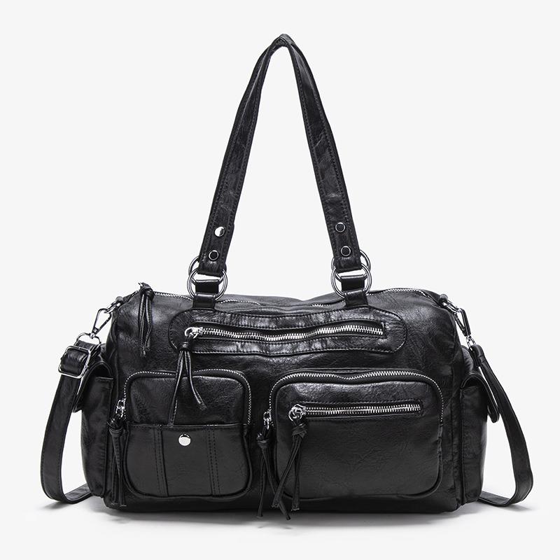Commuter large-capacity messenger bag, high-end zipper handbag bag, fashionable one-shoulder washed women's tote bag.