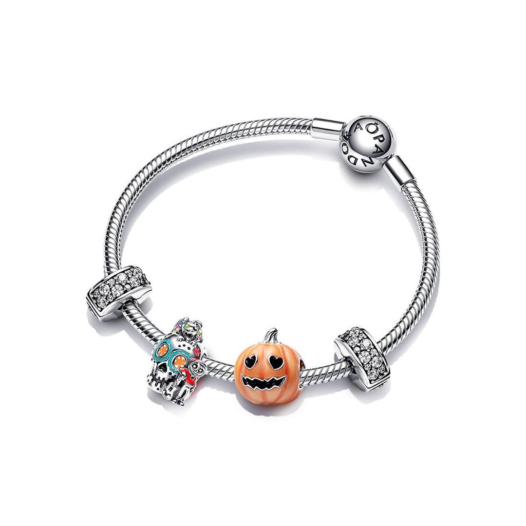 Pandora Glow In The Dark Pumpkin Decoration 925 Silver Silicone Cubic Zirconia Bracelet Women bracelet 562964C00-3