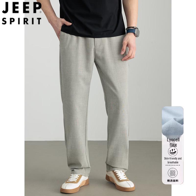 JEEP SPIRIT Men's Lyocell Linen Casual Straight Leg Pants