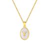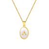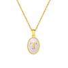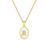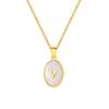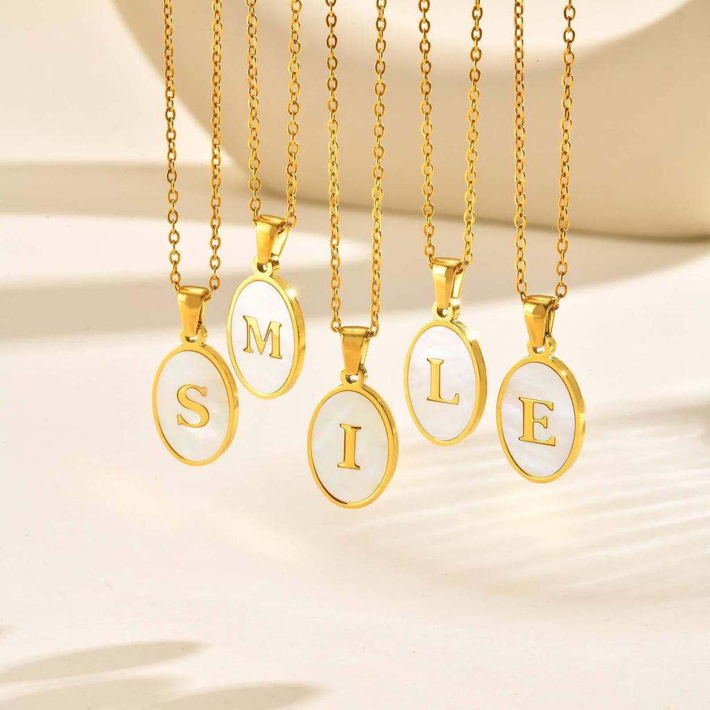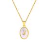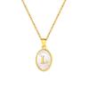 Stainless Steel Oval White Shell 26 Letter Pendant Name Letter Necklace Commemorative Gift Pn-2186