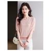 Haut en maille à manches courtes et col ondulé pour femme, orné de perles, idéal pour les trajets quotidiens.