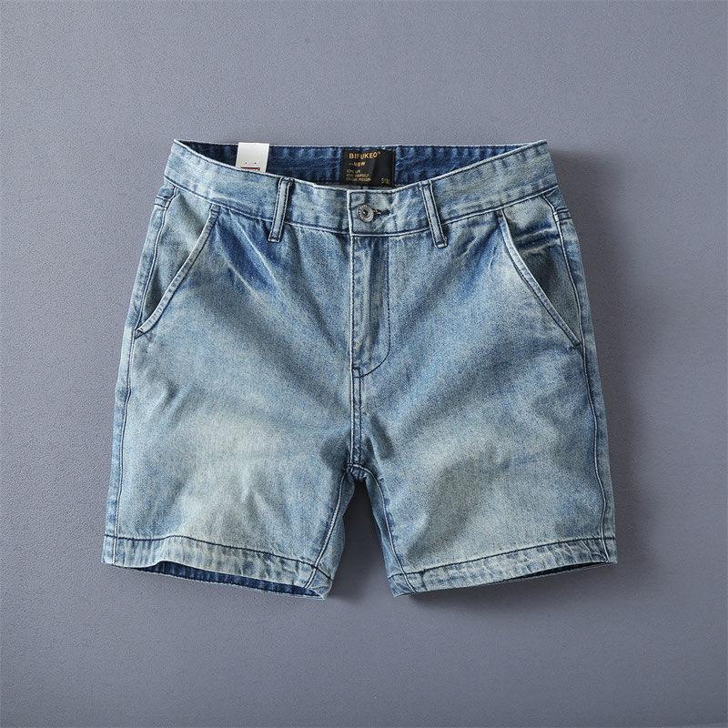 Shorts en Jean Homme Style Vintage Lavé Coupe Droite Shorts en Jean Été Chaud Tendance Pantalon Décontracté Coréen pour Homme Pantalon Court