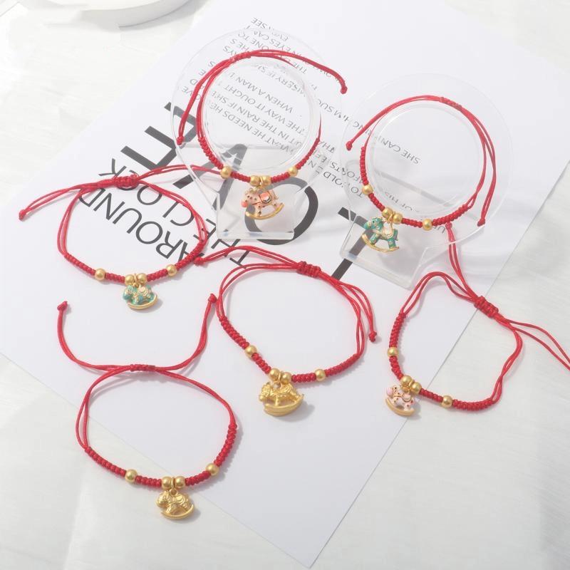 2026 Horse Year Lucky Red Rope Bracelet Chinese Style Zodiac Horse Braided Bracelet Women Fashion Jewelry