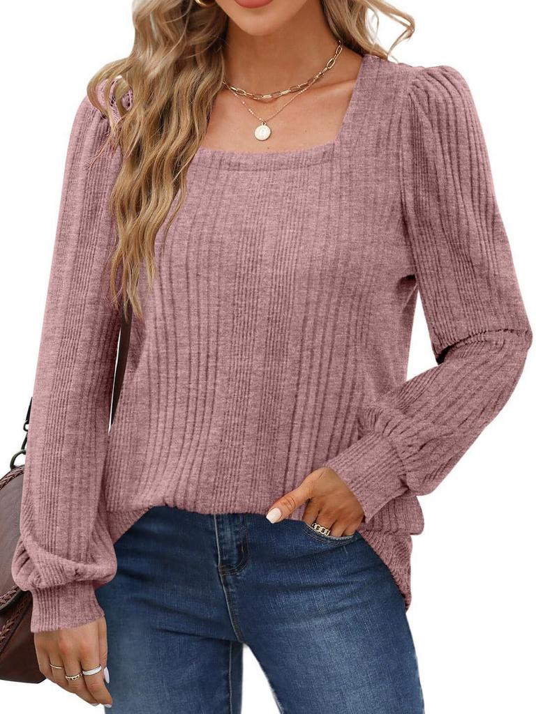 Autumn New Women's Chunky Knit Square Neck Casual Long Sleeve Top