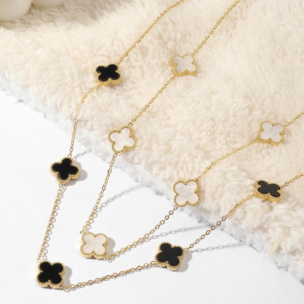 Collier trèfle à quatre feuilles chanceux à cinq fleurs Collier en acier titane Mode fille Chaîne de clavicule simple