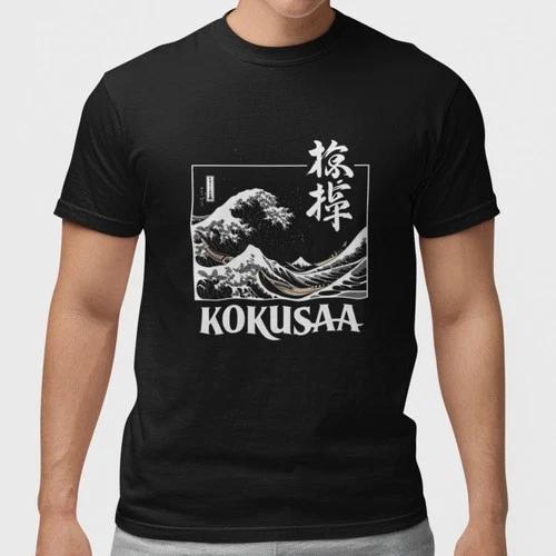 Kokusaa Great Wave Japanese Art T-Shirt Aesthetic Kanji Graphic Tee Unisex