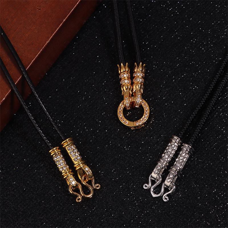 Chaîne de Pendentif Bouddhiste Thaïlandais Réglable Corde de Collier Simple Avec Boucle Cercle de Lotus en Zirconium Micro-Diamant