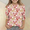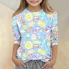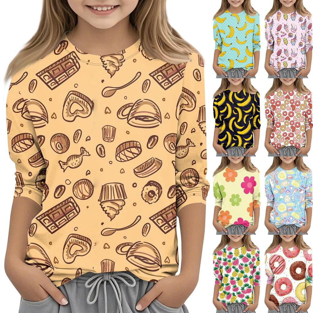 T-shirt décontracté pour enfant à col rond, manches sept-quarts, imprimé