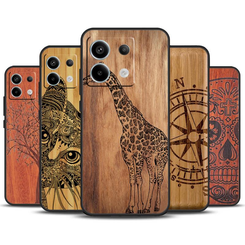 Bamboo Wood Pattern Skull Print Case For Xiaomi Redmi Note 13 11 9 10 12 Pro Plus 9S 10S 11S 12S Redmi 13C 9C 10C 12C Cover