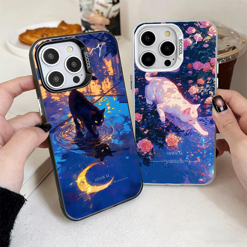 Night Moon Cat Dreamy Art Shockproof Phone Case for iPhone 17 Air 16 16E 15 Pro Max 14 Plus 13 Mini 12 Back Cover Anti Fall Fund