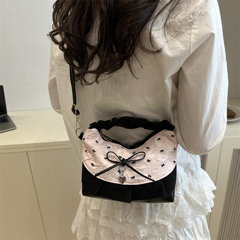 Niche design bow underarm bag women's handbag fashion shoulder messenger bag sweet baguette bag