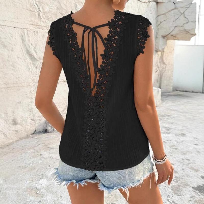 Women's New Summer Round Neck Stitching Hollow Lace Vest Top