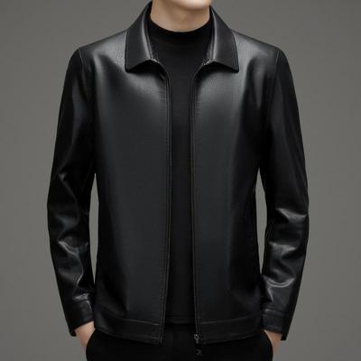 Veste en Cuir Véritable Nouveau Style Printemps et Automne pour Homme Plus Velours Vêtements de Papa pour Homme Veste en Cuir d'Agneau pour Homme