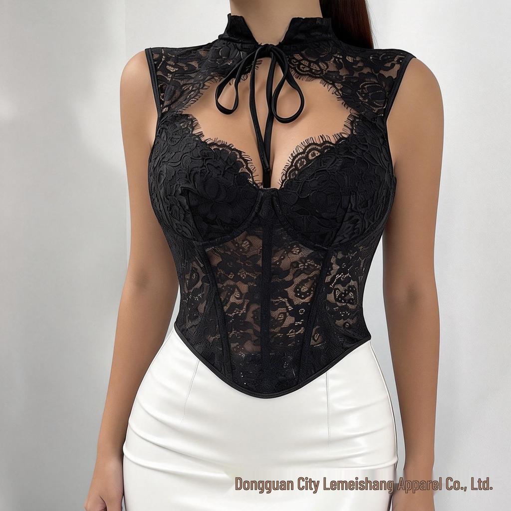 Camisole Européenne & Américaine Dentelle Baleinée Anneau en Acier – Haut Ceintureur Dos Nu à Bretelles.