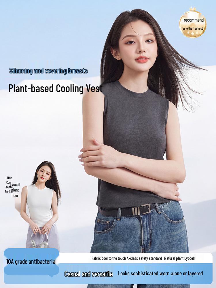 Tencel Lyocell Women's Sleeveless Knit Vest - Loose Round Neck Slimming Top