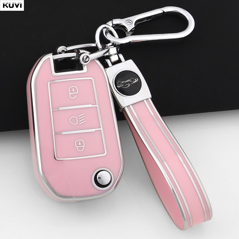 TPU Car Folding Key Case Cover Shell For Peugeot 208 308 408 508 2008 3008 4008 5008 For Citroen C3 C4 CACTUS C6 C8 Accessories