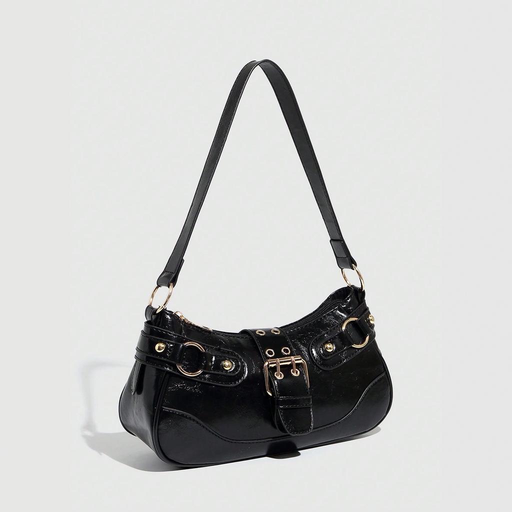 Retro High-End Bag Women'S Fashion Rivet Underarm Bag Niche Design Versatile Commuter Shoulder Bag