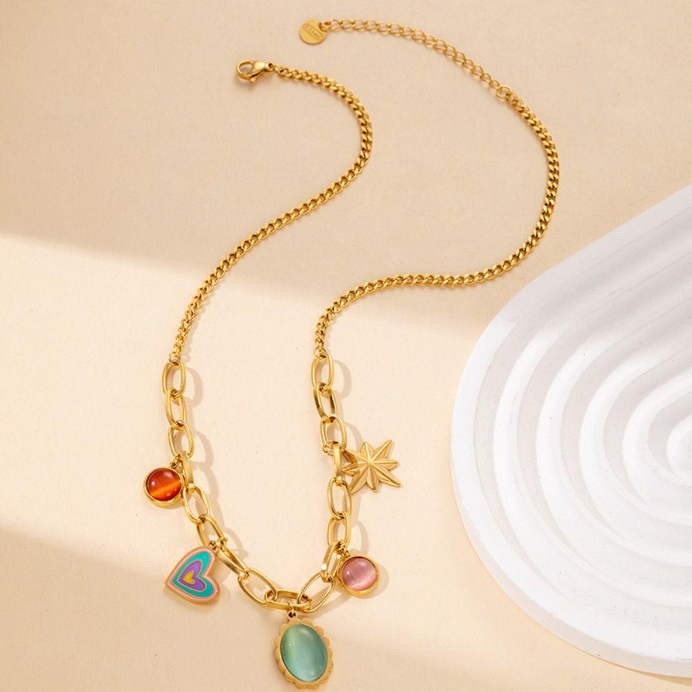 Golden Pendant Necklace Stainless Steel Choker Necklaces Classy Neck Chain Fashion Accessory