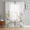 Plants Flowers Leaves Curtain Window Tulle Living Room Bedroom Kitchen Chiffon Treatment Decorations Curtains Light Filtering Made Of Polyester Area