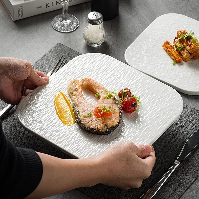Assiette Plate Carrée Simple, Assiette Occidentale Motif Roche, Assiette à Steak de Restaurant, Assiette à Gâteau Dessert d'Hôtel, Sensation Avancée
