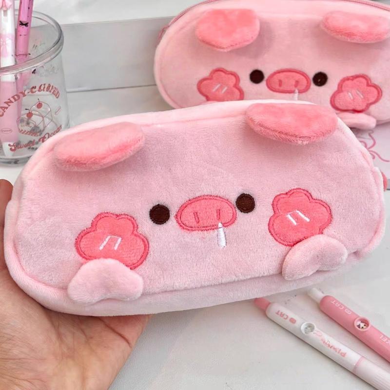 New Plush Little Bear Little Pig Pencil Case Cute Makeup Bag Large Capacity Portable Stationery Storage Pouch Zipper Pen Case