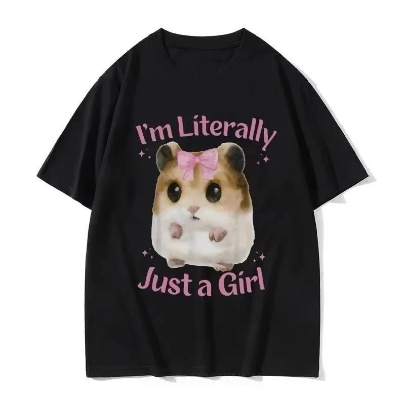 Collection été 2026 « Je suis littéralement juste une fille », t-shirt mignon et triste avec un hamster, mème drôle, pour hommes et femmes, style décontracté.