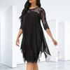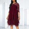 Robe en mousseline pour femme Élégante Longueur genou Tendance Manches 3/4 Mi-longue Robe en dentelle patchwork
