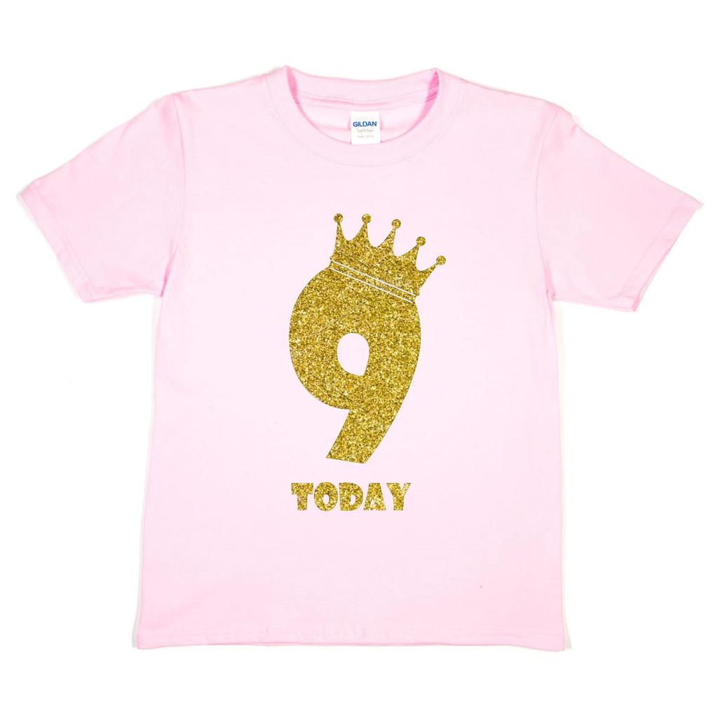 Kids Nine Today Birthday T-shirt In Gold Glitter Happy 9th Birthday Gift