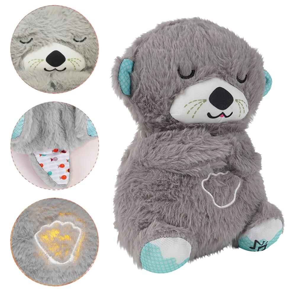 (Dark Gray) With Breathing Movement Soothing Sleeping Otter Toy Musical Stuffed Baby Toy