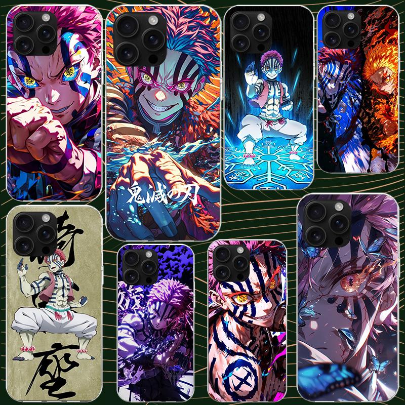 Akaza Demon Slayers Coque pour iPhone 13 12 Mini 11 Pro Max Housse de Téléphone Souple X XS XR 7 SE 8 Plus 6 6S 5 5S Silicone Noir Capa