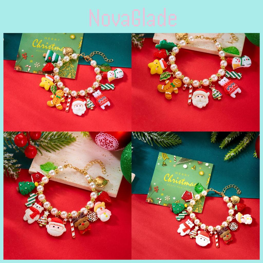 Bracelet Flocon de Neige Père Noël Perles Artificielles Pour Femmes et Hommes Cadeau