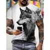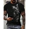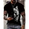 Fashionable summer men's domineering wolf print pattern breathable round neck T-shirt outdoor high street casual top