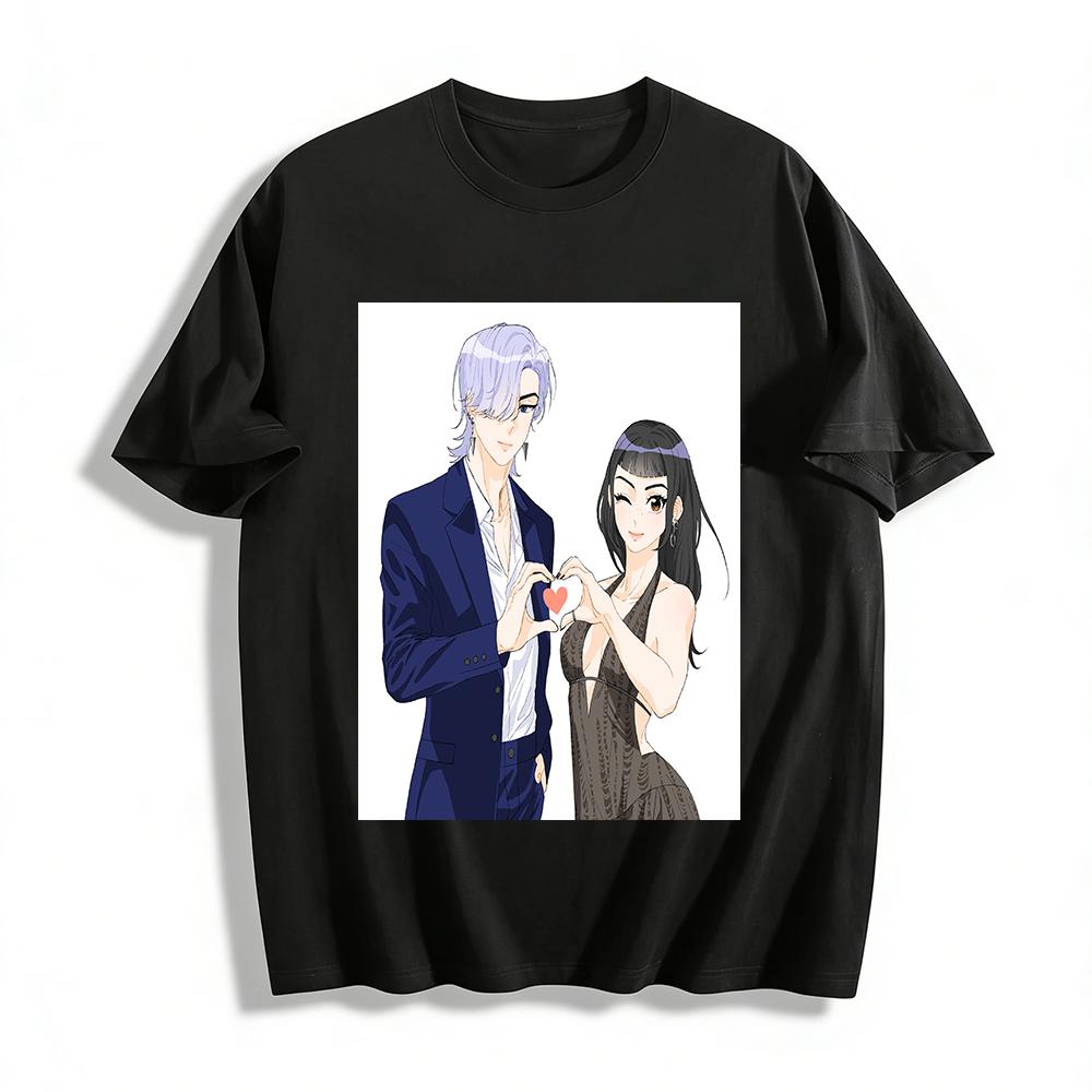 Couple Heart Gesture Print Matching Tops Fashion Sweet Cool Style For Dating Couple Wear Pure cotton T-shirt