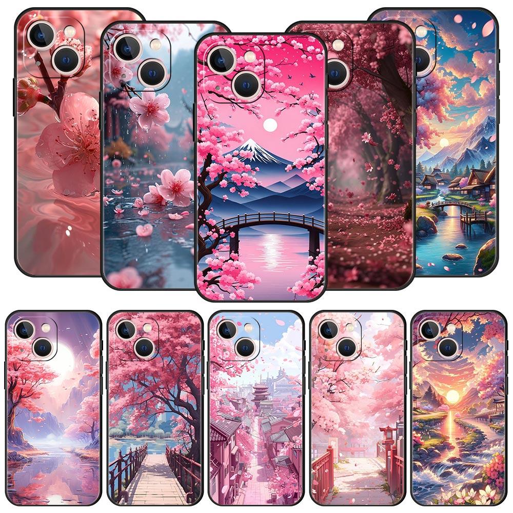 Coque de téléphone Rose Fleurs de Cerisier Printemps Pour iPhone 17 16 15 Pro Max 11 12 13 14 7 8 Plus SE 2020 X XR XS Cover Souple Noir