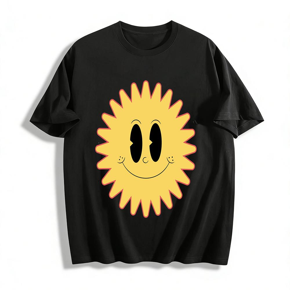 Cartoon Sun Print Unisex Casual T-shirt Summer Fresh Age-reducing Loose Breathable Top Pure cotton T-shirt