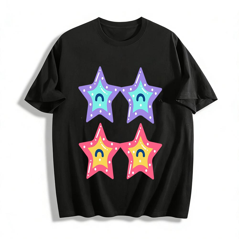 Kids Cute Star Glasses Print T-shirts Boys Girls Casual Breathable Short Sleeve Tops Pure cotton T-shirt