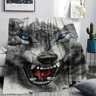 Vintage Wolf Print Flannel Throw Blanket Hypoallergenic TearResistant AllSeason Quilted Polyester Bedding with Digital Wolf
