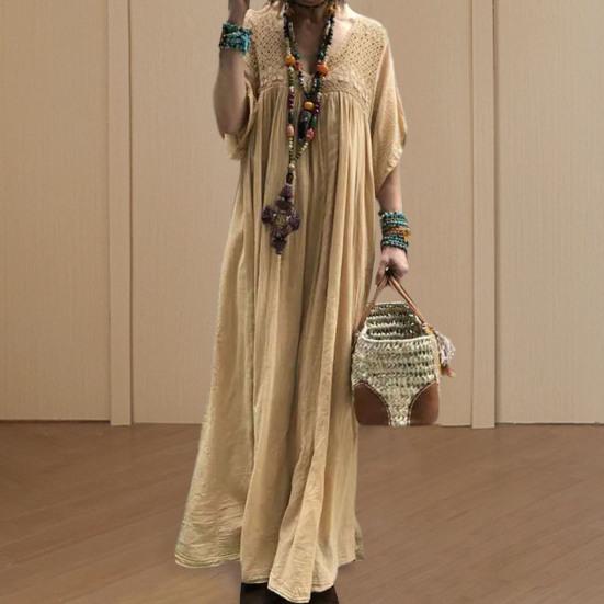 Élevez votre style avec cette robe à col en V épissé en dentelle pour femmes. Le design unique en dentelle ajoute une touche d'allure, rehaussant votre charme sans effort. Confectionnée à partir d'un mélange de coton confortable, cette robe est légère et confortable, assurant un confort toute la journée.