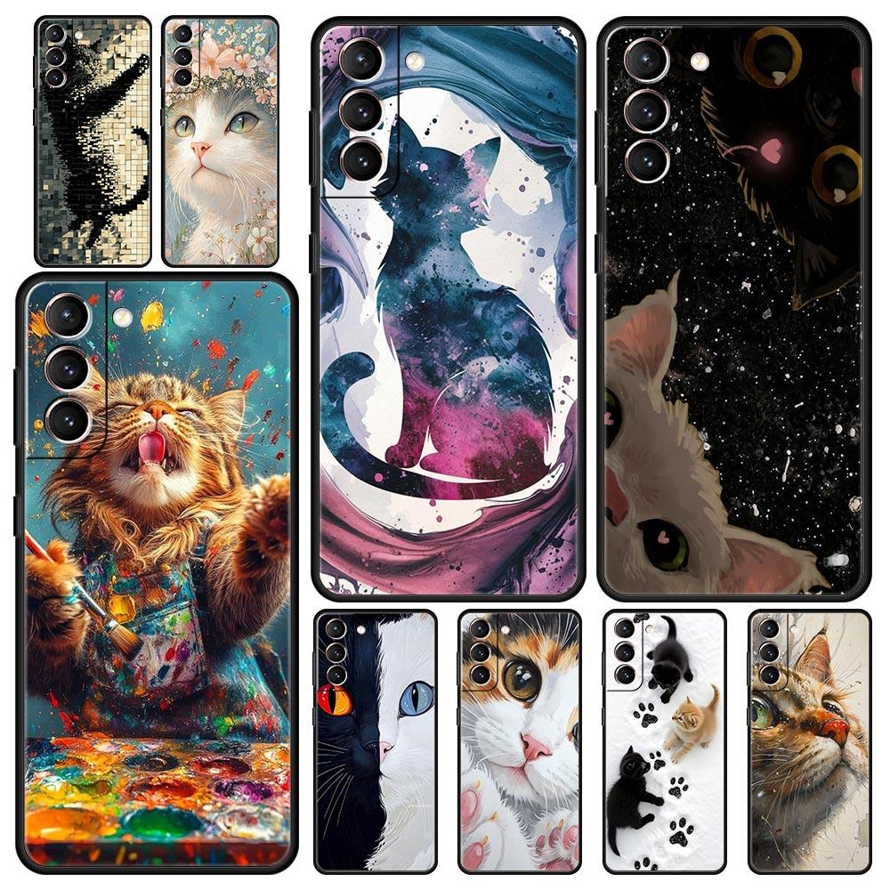 Cute Cat Phone Case for Samsung Galaxy S26 S25 S24 S23 S22 S20 S21 FE Ultra S25 Edge Plus 5G Soft TPU Cover Fundas Capas Bags