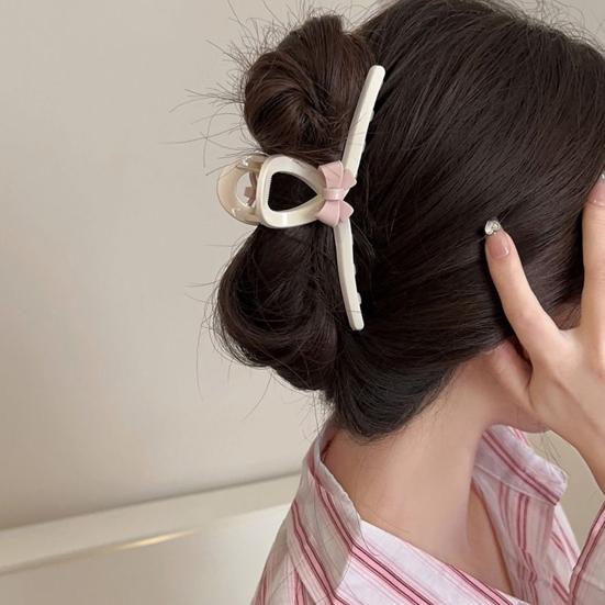 Le délicat nœud 3D ajoute un charme féminin doux mais subtil, avec une esthétique d'inspiration coréenne.. Sa forme évidée unique et son nœud contrastant créent un look distinctif et élégant qui se démarque des pinces ordinaires..