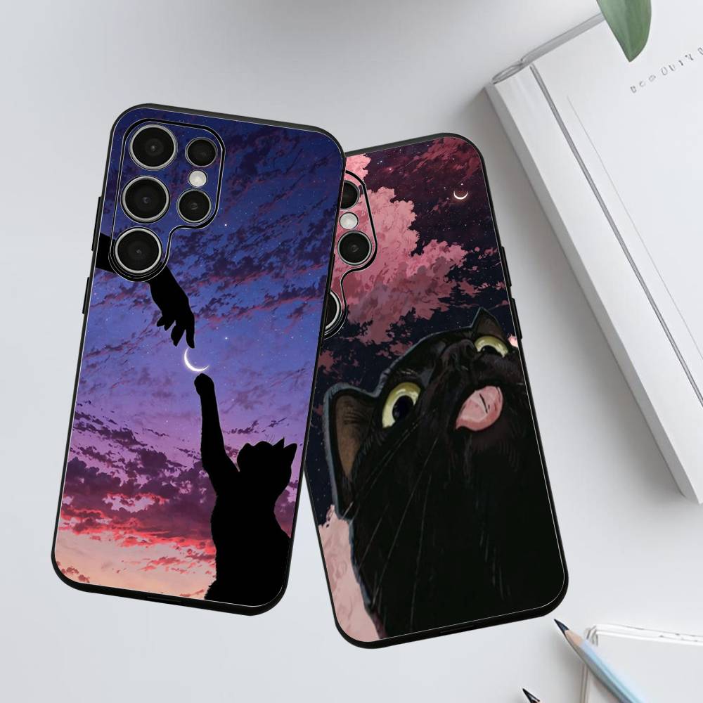 Cut Black Cat Phone Silicone Case for Samsung Galaxy S 24,22,20,23,21,20 Ultra Plus Lite 5G Print Silicone Cover