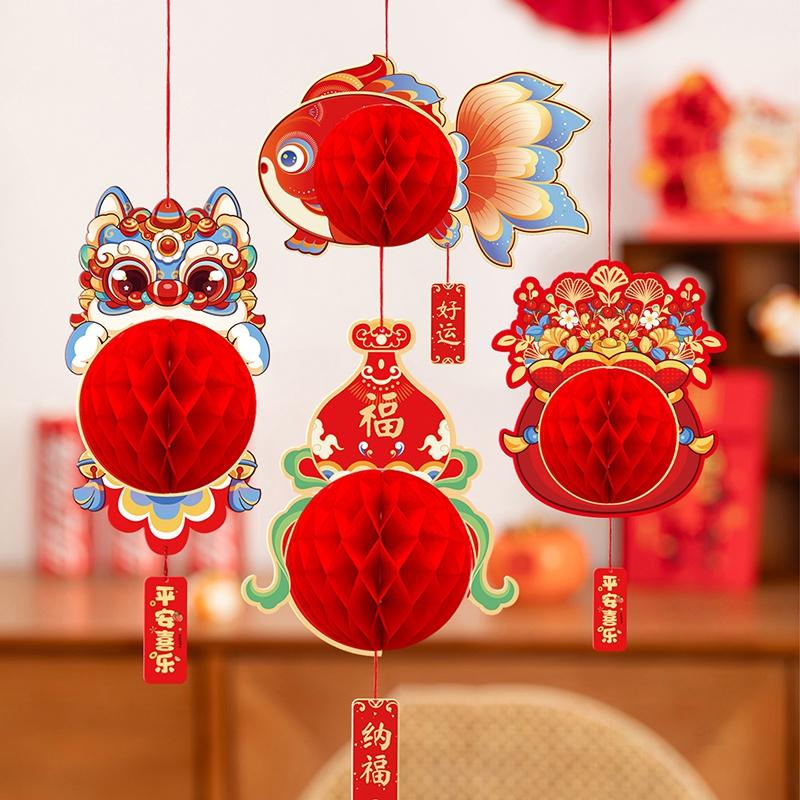 Lanterne Nid d'abeille Festival du Printemps Chinois 2026 Ornement d'arbre Fête du Nouvel An Lunaire Lanternes en Papier Rouge Pliables