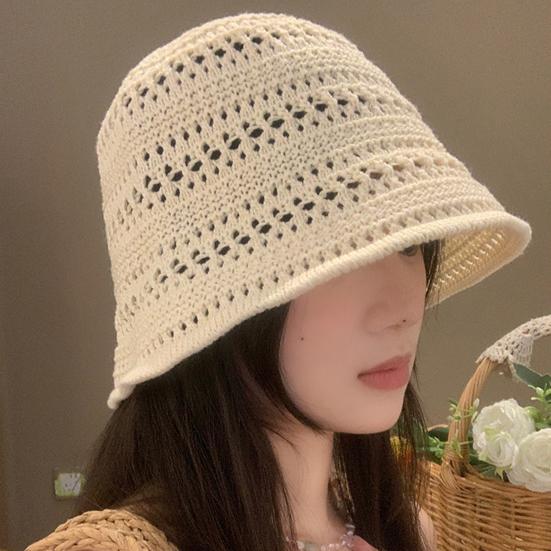 Basin Hat Hand-Crocheted Hollow Design Fisherman Hat Short Brim UV Protection Summer Travel Hat Headwear