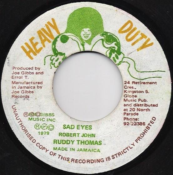 7inch Record RUDDY THOMAS Sad Eyes NONE Heavy Duty 1979 Jamaica Reggae Ska Dub Used
