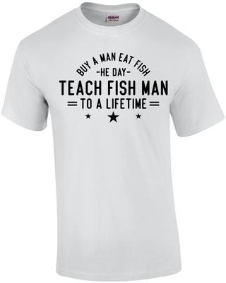 Fishing Gift Teach Man To Fish T shirt Made in the USA Size S to 5XL