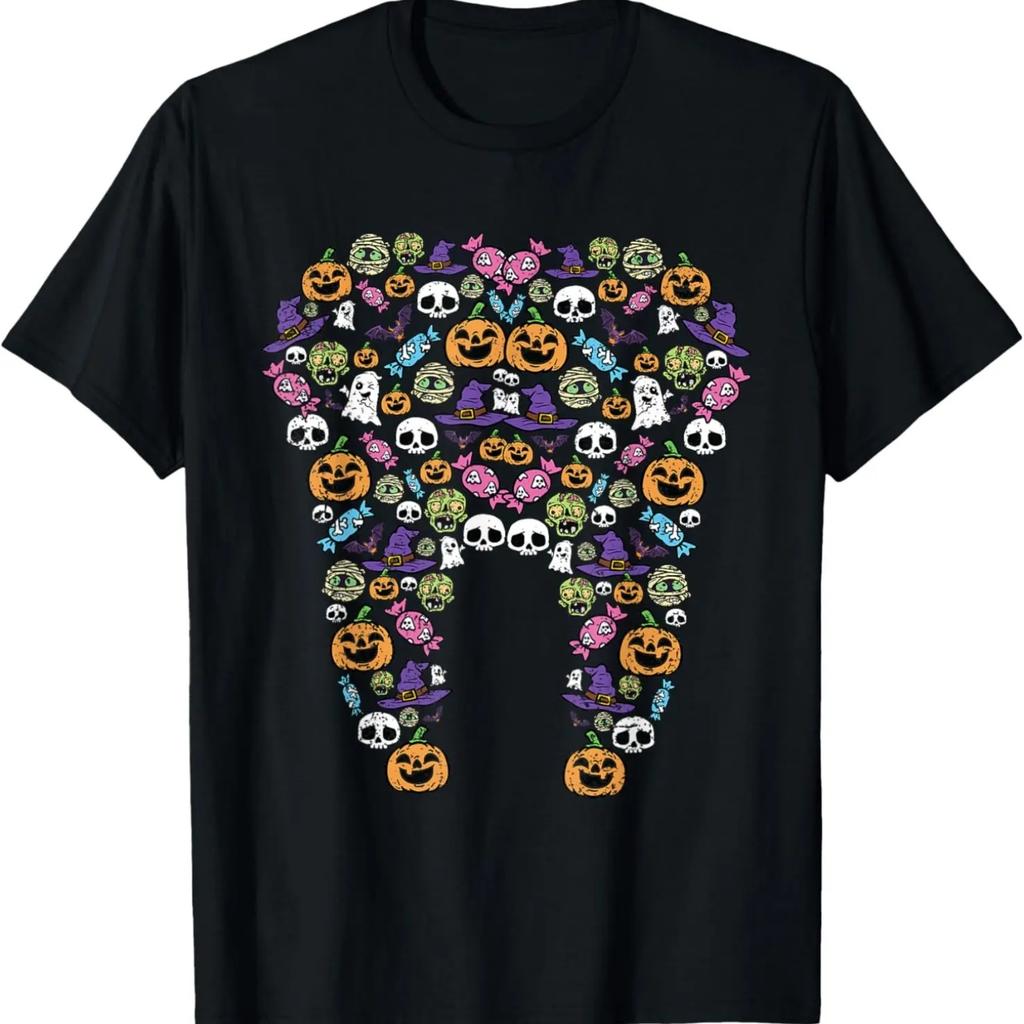 Tooth Halloween Pattern Costume Dentist Dental Assistant T-Shirt