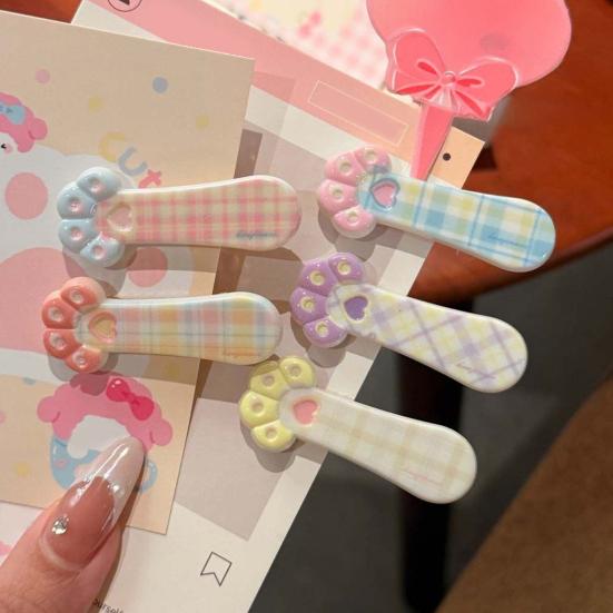 Girl Hairpin Plaid Pattern Cat Paw Shape Hair Clips Stable Clamping Force