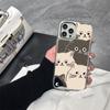 Silver Frame Mirror Phone Case for iPhone 15/14/13/12 Pro Max with Three Cat Design